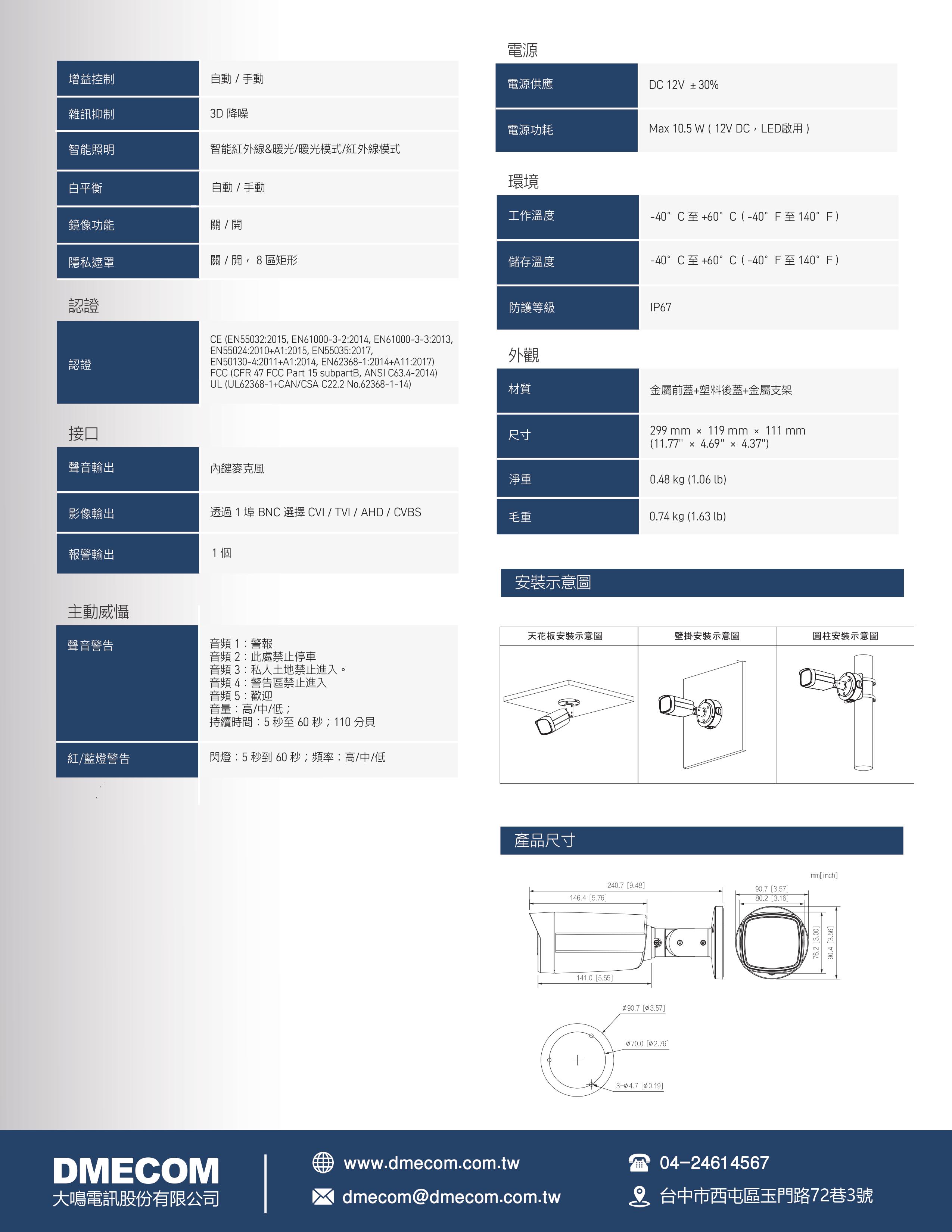 DMECOM 4K智慧聲光報警槍型攝影機 DME-FME1809THN-A-PV